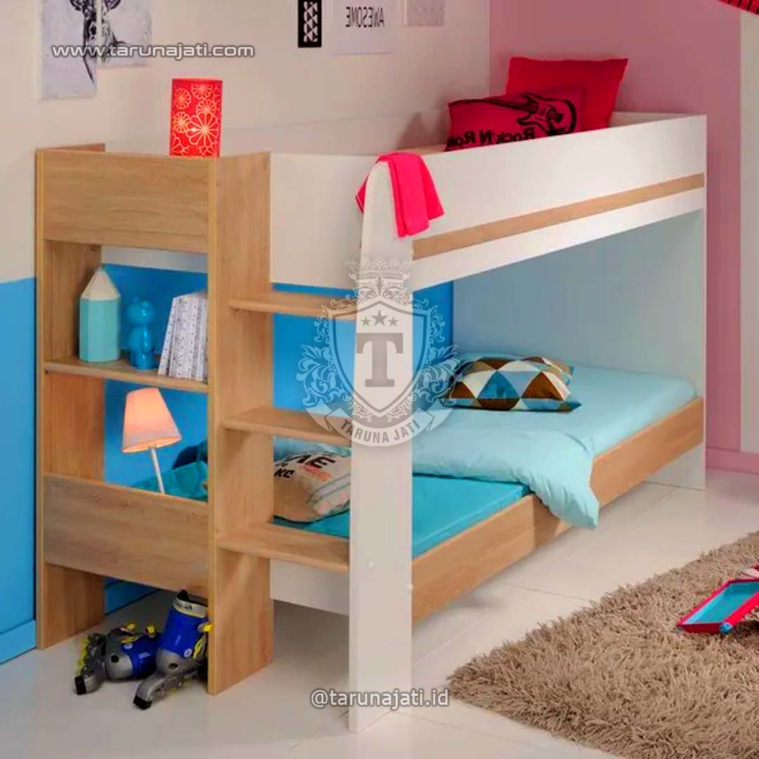 Mebel Tempat Tidur Tingkat ini terbuat dari kayu alami, sehingga ada kemungkinan serat dan warnanya akan sedikit berbeda pada setiap produk. Hal ini merupakan keunikan dari bahan alami tersebut.