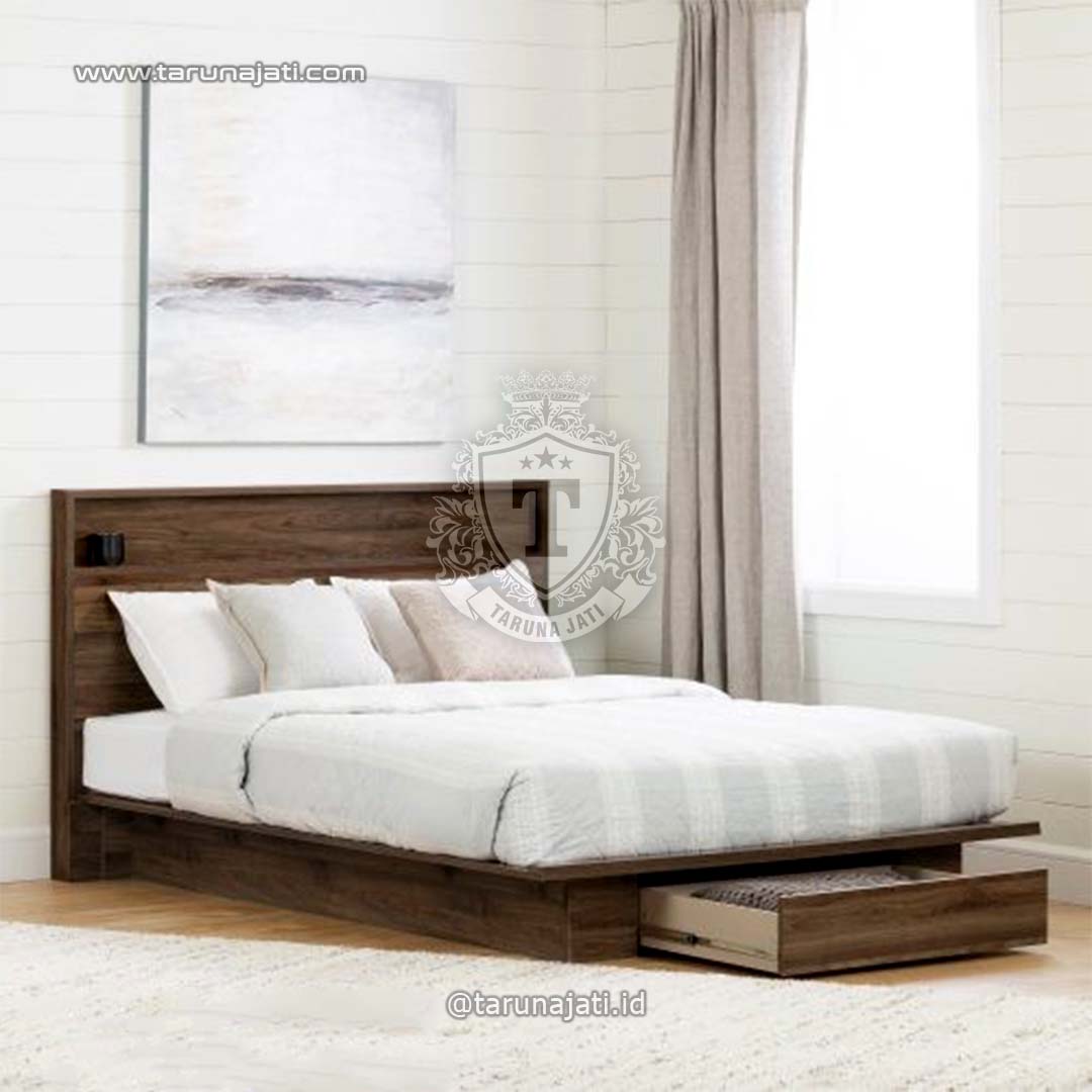 Ranjang Minimalis Mewah Kekinian ini mempunyai desain minimalis dengan sedikit variasi membuatnya terlihat sangat mewah dan modern. Ranjang ini memiliki ukuran yang luas dengan headboard yang tinggi dibuat dari bahan kay jati terbaik membuatnya sangat kuat dan nyaman untuk ditempati. Tempat tidur ini dikombinasikan dengan finishing melamine warna natural doff membuatnya sangat cocok dengan kamar anda.